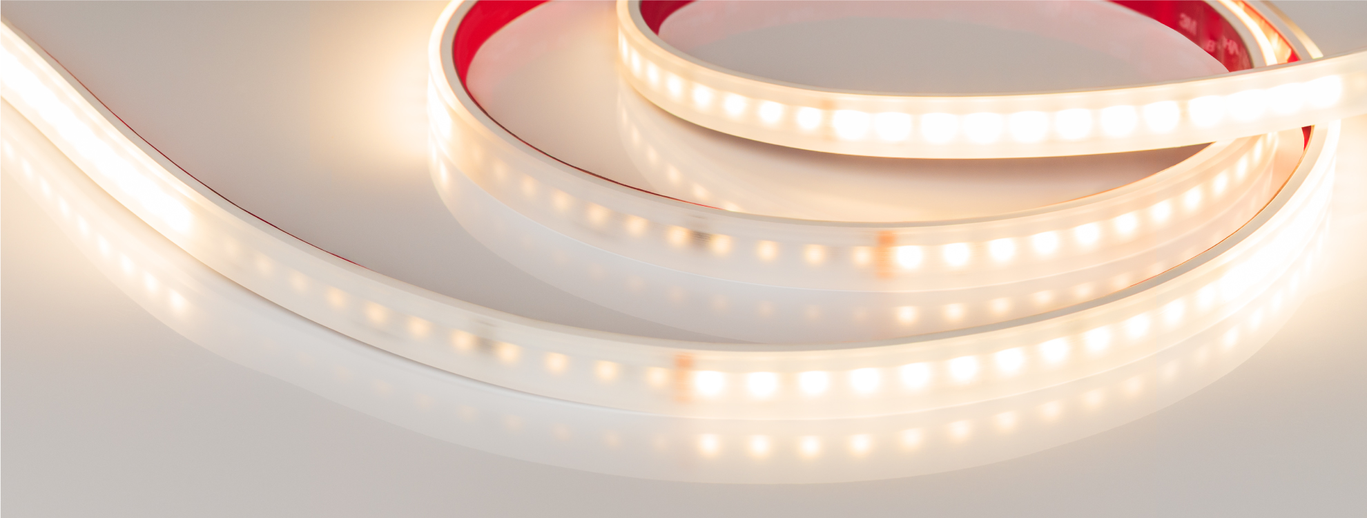 Лента представлена в стандартном ассортименте цветов свечения — 2700, 3000, 4000, 6000 К. Также они доступны в открытом варианте со степенью защиты оболочки IP20 и в герметичном — с маркировкой IP67. Второй тип ленты имеет очень высокий уровень защиты от пыли и может выдержать кратковременное погружение в воду на глубину до 1 м, что позволяет использовать ленту на улице.