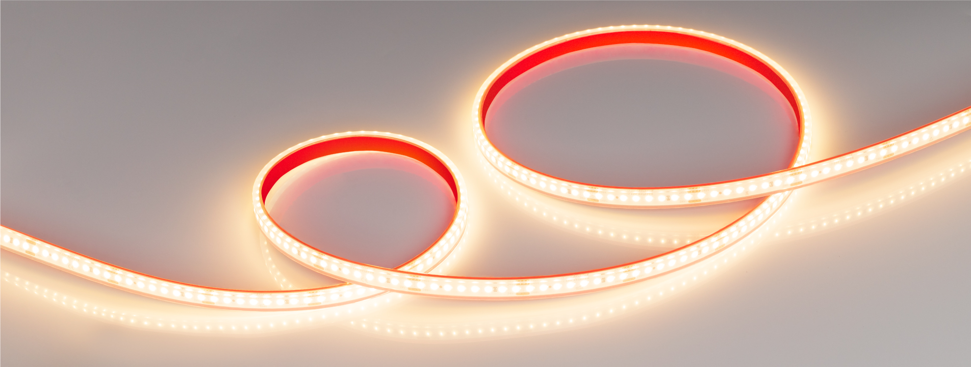 Наполните пространство теплым (2700–3000 K), дневным (4000 K) или белым (6000 K) свечением. Лента с видимой световой точкой хорошо подойдет для декоративной подсветки интерьеров и экстерьеров благодаря устойчивости к низким и высоким температурам (в диапазоне от –40 до +60 ˚С), а высокий индекс цветопередачи CRI>90 позволит воспринимать цветовые оттенки почти так же, как при дневном свете.