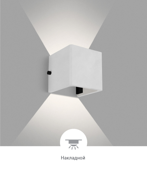 Настенный светильник создает лучи света, направленные вверх и вниз, с теплым цветом свечения (3000 K) и высокой цветопередачей (СRI>90), подчеркивая рельеф поверхности архитектурных сооружений. Кубический корпус выполнен из бетона и гармонично смотрится на фасадах зданий. Угол каждого из лучей регулируется, чтобы формировать выразительные световые акценты на поверхностях стен. Высокая степень защиты IP65 предотвращает попадание влаги и пыли внутрь светильника, что позволяет использовать его под открытым небом.