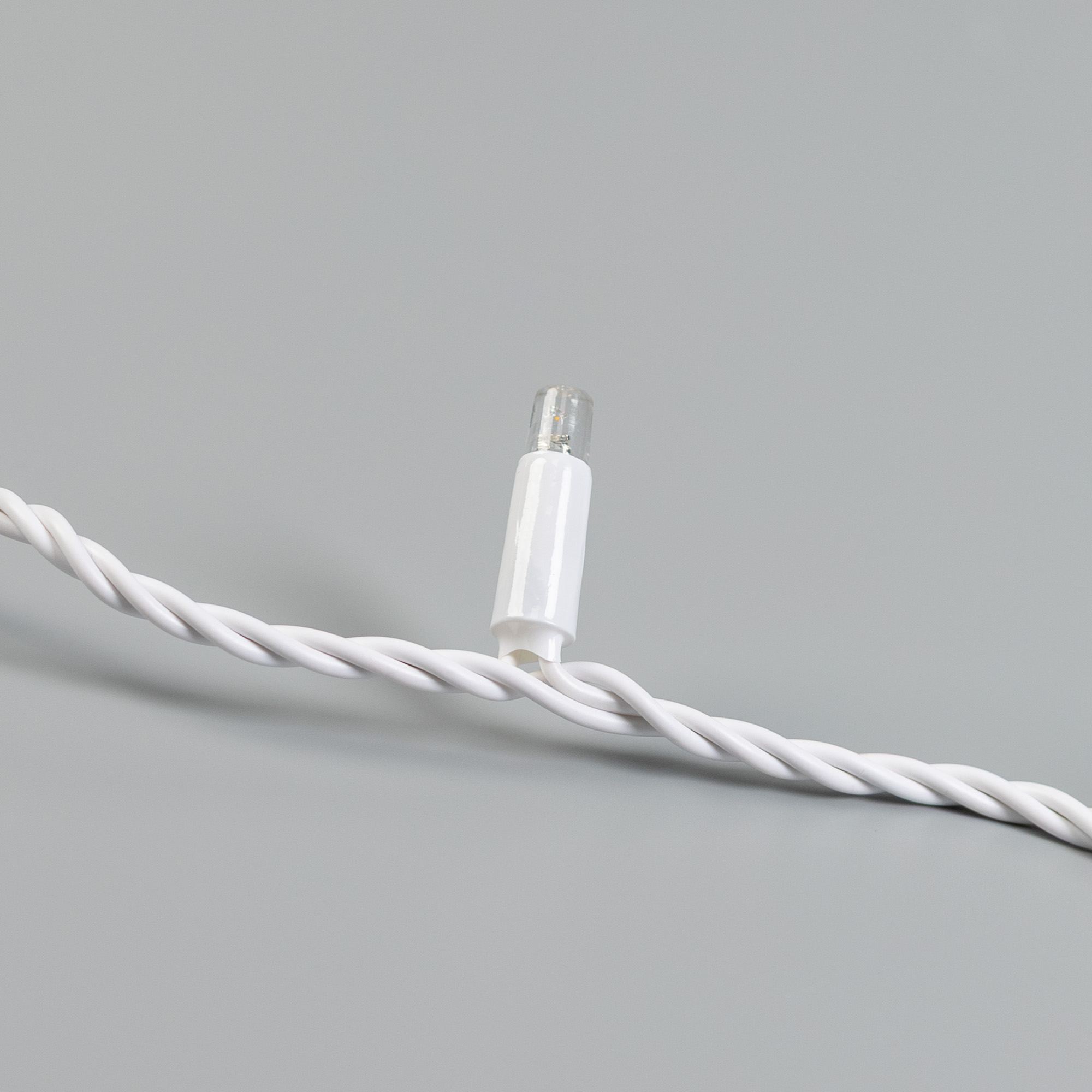 Универсальная светодиодная гирлянда "НИТЬ" серии Classic, предназначенная для декорирования и создания праздничного настроения как внутри помещений, так и снаружи (степень пылевлагозащиты IP65 позволяет размещать гирлянду на улице под навесом). Имея длину 10000 мм, она может использоваться для оформления средних и больших площадей. Универсальные соединительные разъемы позволяют наращивать длину до 50 м без использования дополнительных аксессуаров. Прозрачная вогнутая линза и эффект непрерывного свечения обеспечивают яркое, равномерное освещение, выделяя украшаемые объекты. Синий свет в сочетании с холодным белым, помогает создать необходимую атмосферу для декоративного объекта. Провод изготовлен из ПВХ и окрашен в белый цвет. Аксессуар для подключения гирлянды к сети приобретается отдельно.