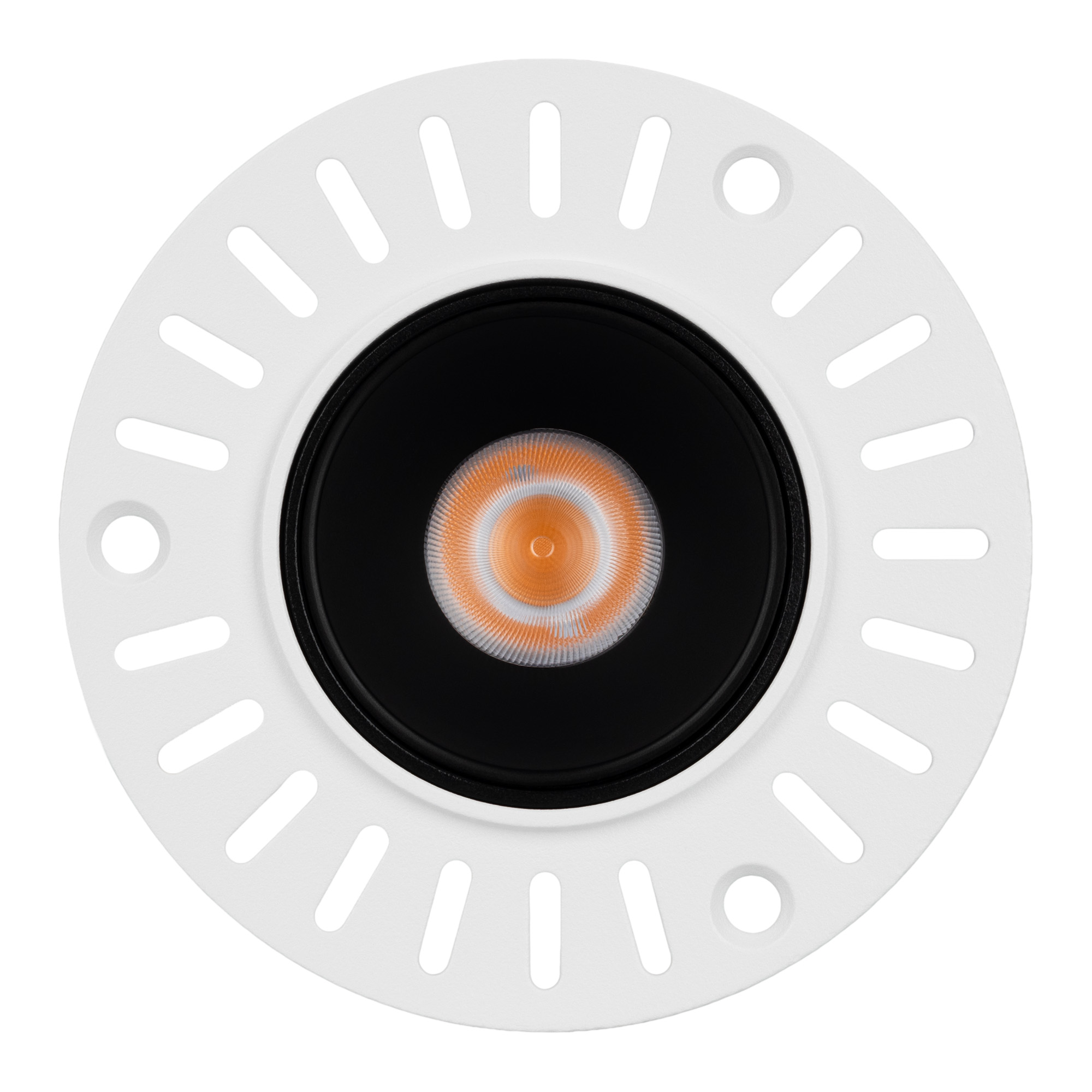 Встраиваемый безрамочный светильник под шпаклевку мощностью 8.4 Вт. Предназначен для освещения жилых, офисных, торговых и других помещений. Теплый белый цвет свечения (3000 К) и световой поток 700 лм. Заглубленная оптика ограничивает боковое излучение, тем самым исключая появление ослепляющего эффекта. Высокий индекс цветопередачи (CRI>90) и узкий угол излучения 32° для локального освещения. Светильник встраивается в установочное отверстие диаметром 65 мм. Драйвер в комплекте для подключения к сети 230 В.
