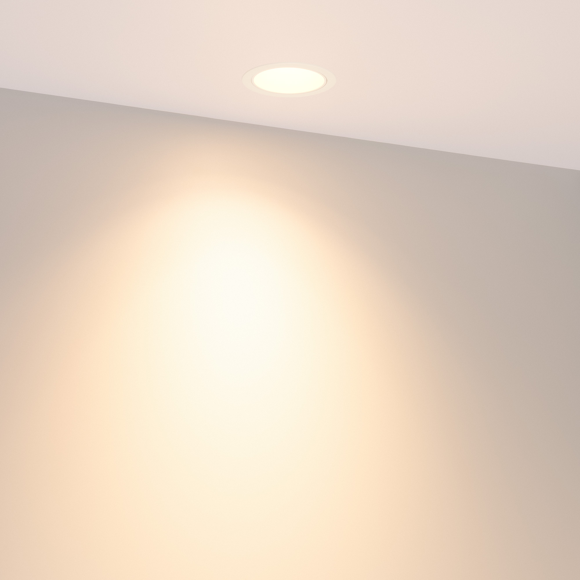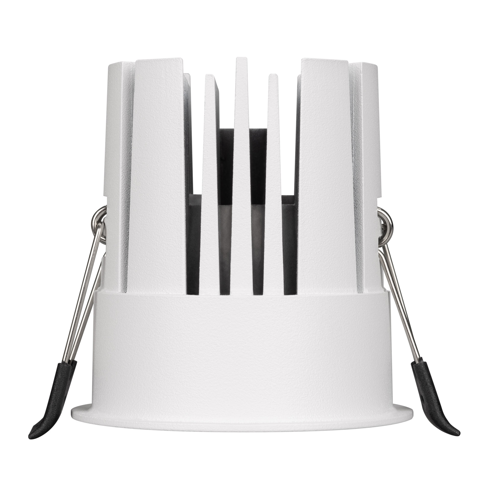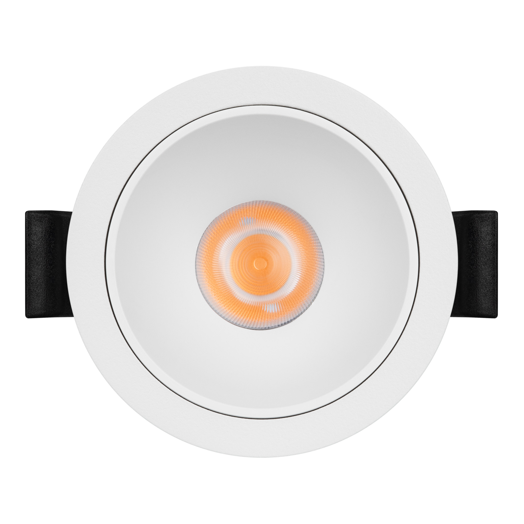 Встраиваемый светильник даунлайт с высоким индексом цветопередачи CRI>90 обеспечивает качественное освещение с точной передачей цветовых оттенков. Алюминиевый круглый корпус с декоративным рефлектором является интересным дизайнерским решением, создавая эффект света из ниоткуда - Darklight. Низкий коэффициент дискомфорта делает освещение очень комфортным для глаз. Защита корпуса на уровне IP20, cветовая эффективность 81 лм/Вт и узкий угол излучения 35 градусов подходят для направленного освещения торговых, офисных, жилых помещений, где отсутствует контакт с водой или другими жидкостями. Светильник легко устанавливается с помощью пружин в монтажное отверстие. Драйвер поставляется в комплекте, позволяя быстро подключить светильник напрямую к сети переменного тока 230 В. Низкая пульсация обеспечивает равномерное освещение без мерцания. Диммирование возможно при замене штатного драйвера.
