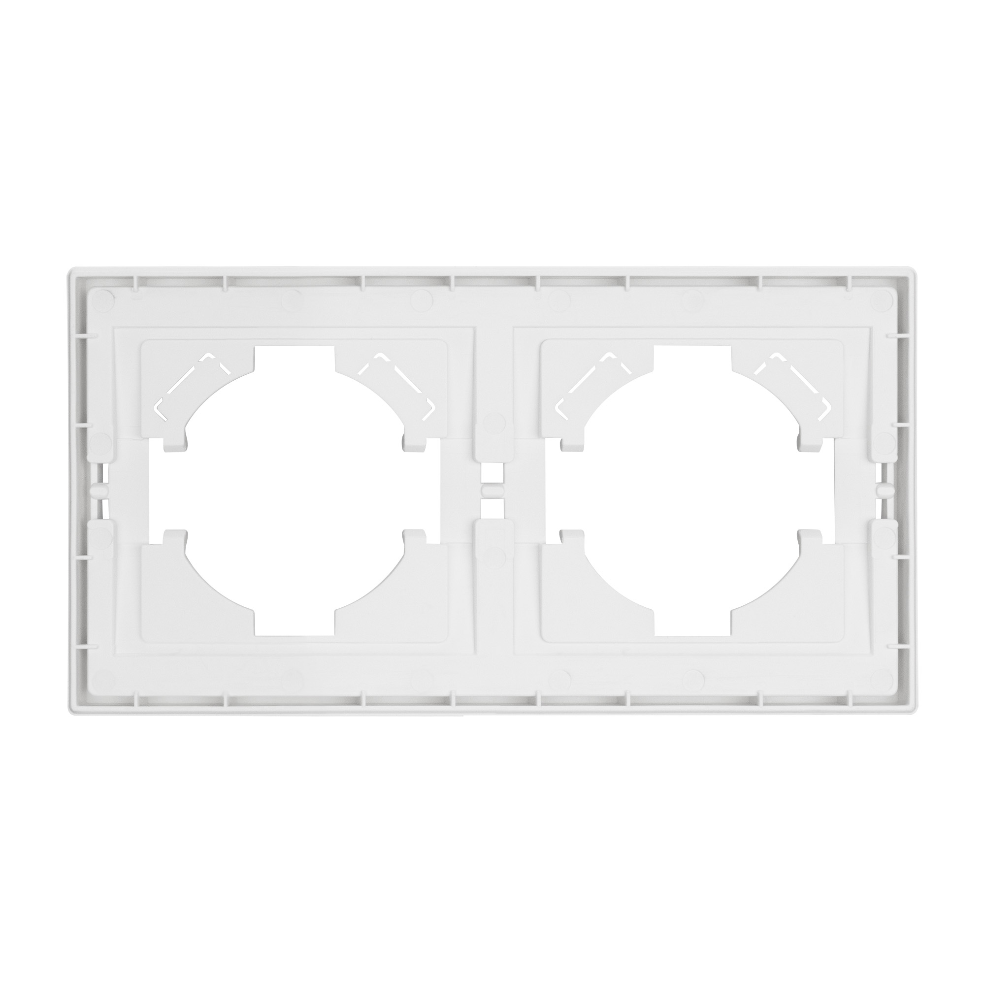 Рамка пластиковая на 2 поста, под встраиваемый механизм. Цвет - белый. Среднего уровня герметичности IP20. Ориентация монтажа горизонтальная. Габаритные размеры: длина 150 мм, ширина 80 мм, высота 9 мм. Гарантийный срок 12 мес.