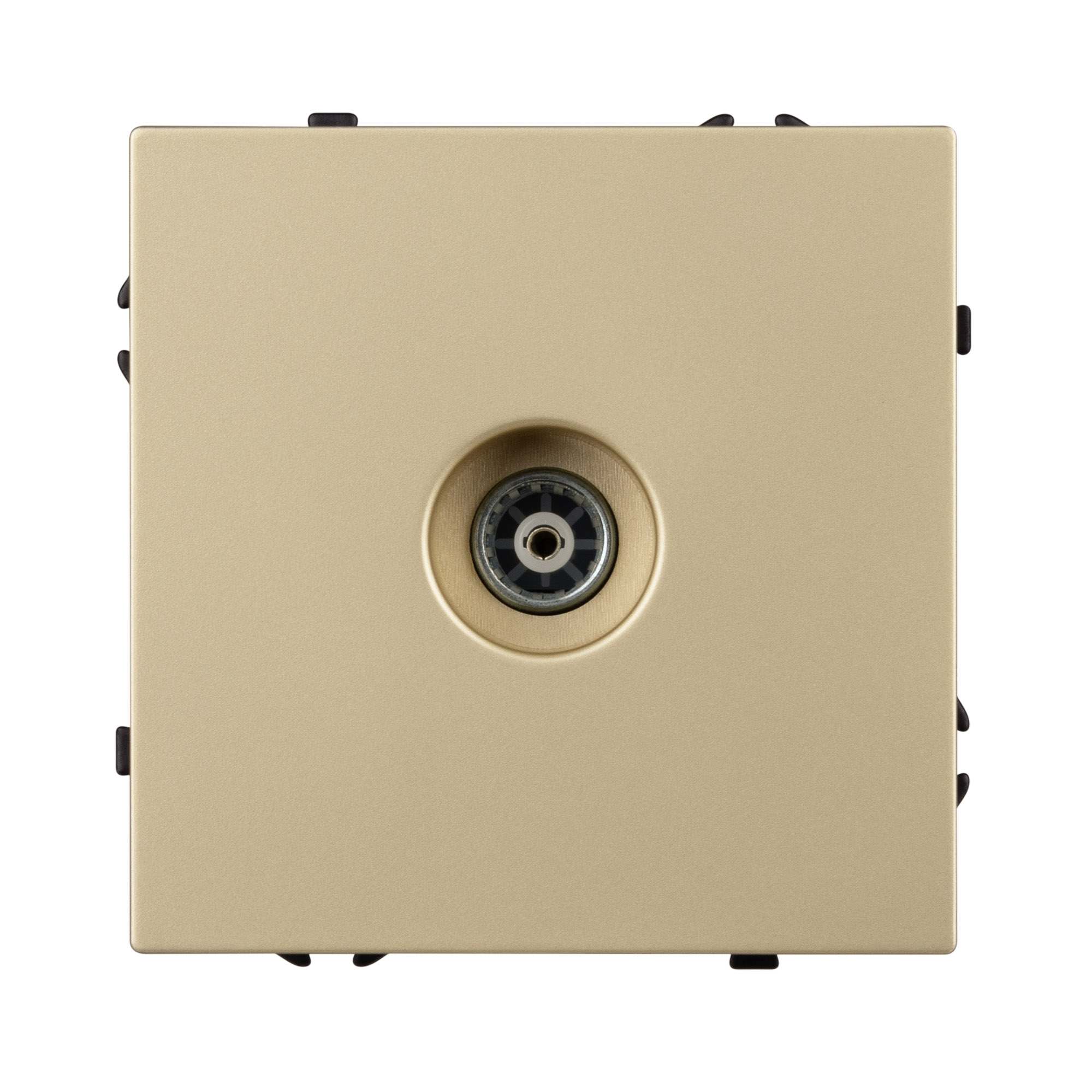 Механизм ТВ-розетки совместим с рамками серии NOBE, создает утонченный минималистичный вид. Скрытый тип монтажа позволяет гармонично встроить в интерьер любого современного дизайн-проекта. Видимая часть выполнена из высококачественного пластика цвета золотой песок и имеет Soft-Touch покрытие, что придает изделию приятные тактильные ощущения и стильный внешний вид.