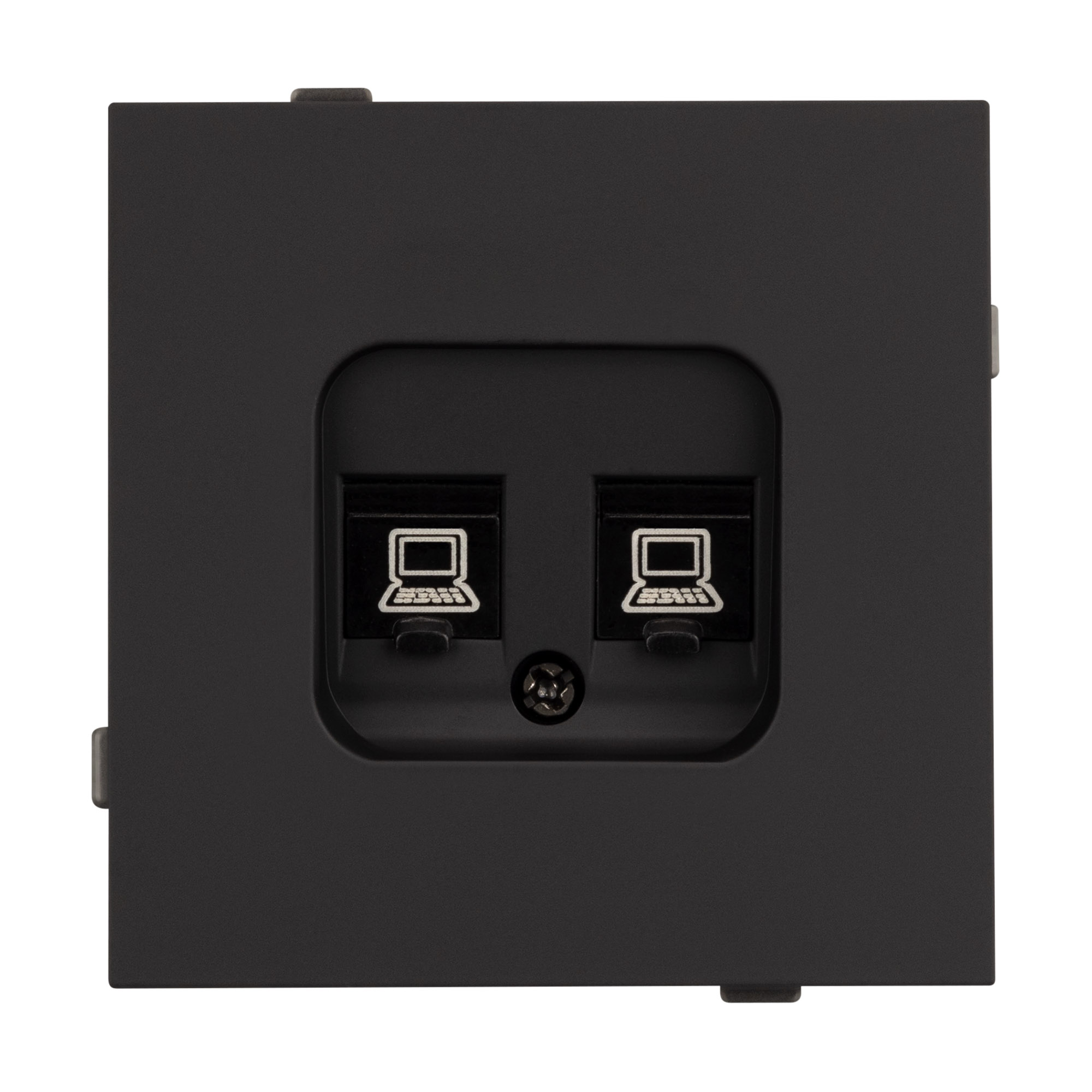 Механизм компьютерной розетки совместим с рамками серии TENDO, создает утонченный минималистичный вид. Скрытый тип монтажа позволяет гармонично встроить в интерьер любого современного дизайн-проекта. Видимая часть механизма выполнена из высококачественного пластика черного цвета и имеет Soft-Touch покрытие, что придает изделию приятные тактильные ощущения и стильный внешний вид.