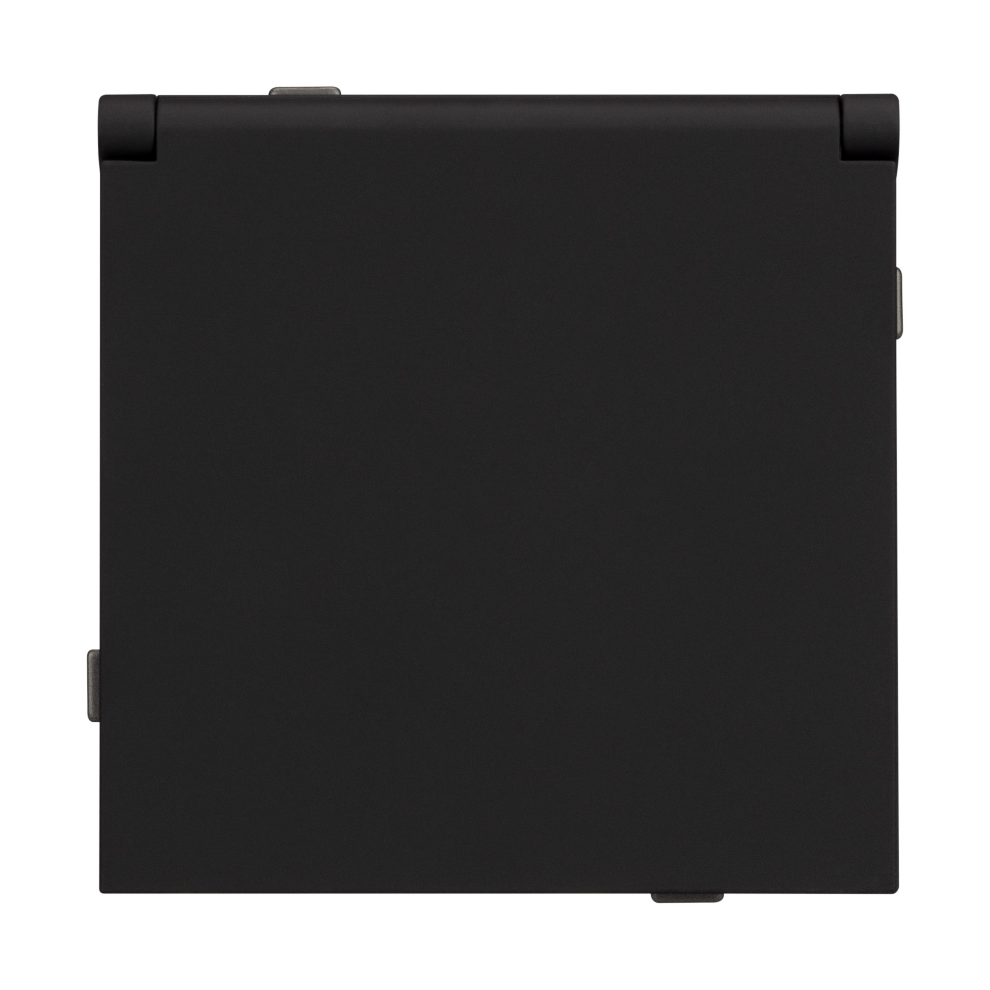 Механизм розетки с заземлением и влагозащитной крышкой на 1 пост. Цвет - черный, с Soft-Touch покрытием. Без фронтальной рамки. Уровень пылевлагозащиты IP44. Розетка устанавливается в стандартный подрозетник круглого сечения диаметром 60мм. Габаритные размеры: длина 71 мм, ширина 71 мм, высота 52 мм. Гарантийный срок 10 лет.