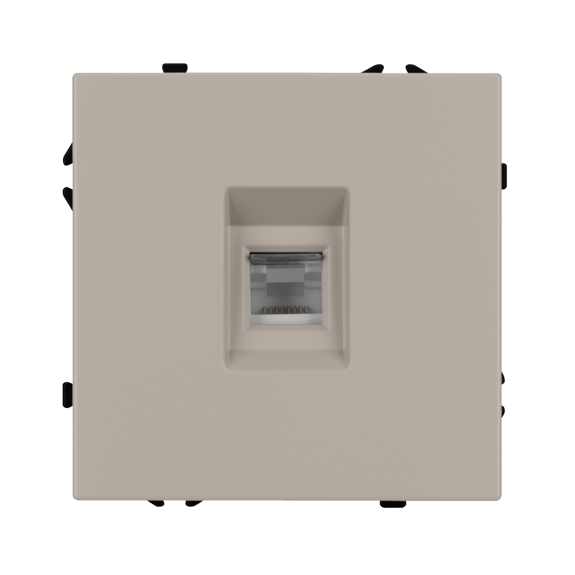 Строгие геометрические линии гармонично сочетаются с функциональностью продуманных механизмов, создавая идеальное решение для дизайн-проектов, где важны как эстетика, так и практичность. Механизм компьютерной розетки совместим с рамками серии NOBE, создает утонченный минималистичный вид. Скрытый тип монтажа позволяет гармонично встроить в интерьер любого современного дизайн-проекта. Видимая часть механизма выполнена из высококачественного пластика цвета кашемир и имеет Soft-Touch покрытие, что придает изделию приятные тактильные ощущения и стильный внешний вид. Выходной порт RJ-45 (Female) формата 8P8C соответствует категории 6 (Cat.6), что поддерживает высокоскоростные соединения до 10 Гбит/с на расстоянии до 55 метров. Самозакрывающаяся крышка защищает выходной порт от повреждения и загрязнения внешних контактов разъема. Контактная часть выполнена по технологии IPC (изоляционно–пробивающего контакта) с нанесением цветной маркировки схемы разводки на корпус, позволяя быстро и легко подсоединить механизм компьютерной розетки к большинству многожильных кабелей типа UTP (неэкранированные). А усиленные распорные лапки двойного захвата надежно фиксируют механизм в установочном подрозетнике круглого сечения диаметром 60мм. Суппорт окрашен в черный матовый цвет под основу механизма и выполнен из металла толщиной 1,5мм, что обеспечивает безопасность и уверенность в установке. На каждой стороне суппорта размещены фиксирующие элементы, позволяющие комбинировать механизмы в системы до 5шт как горизонтально, так и вертикально.
