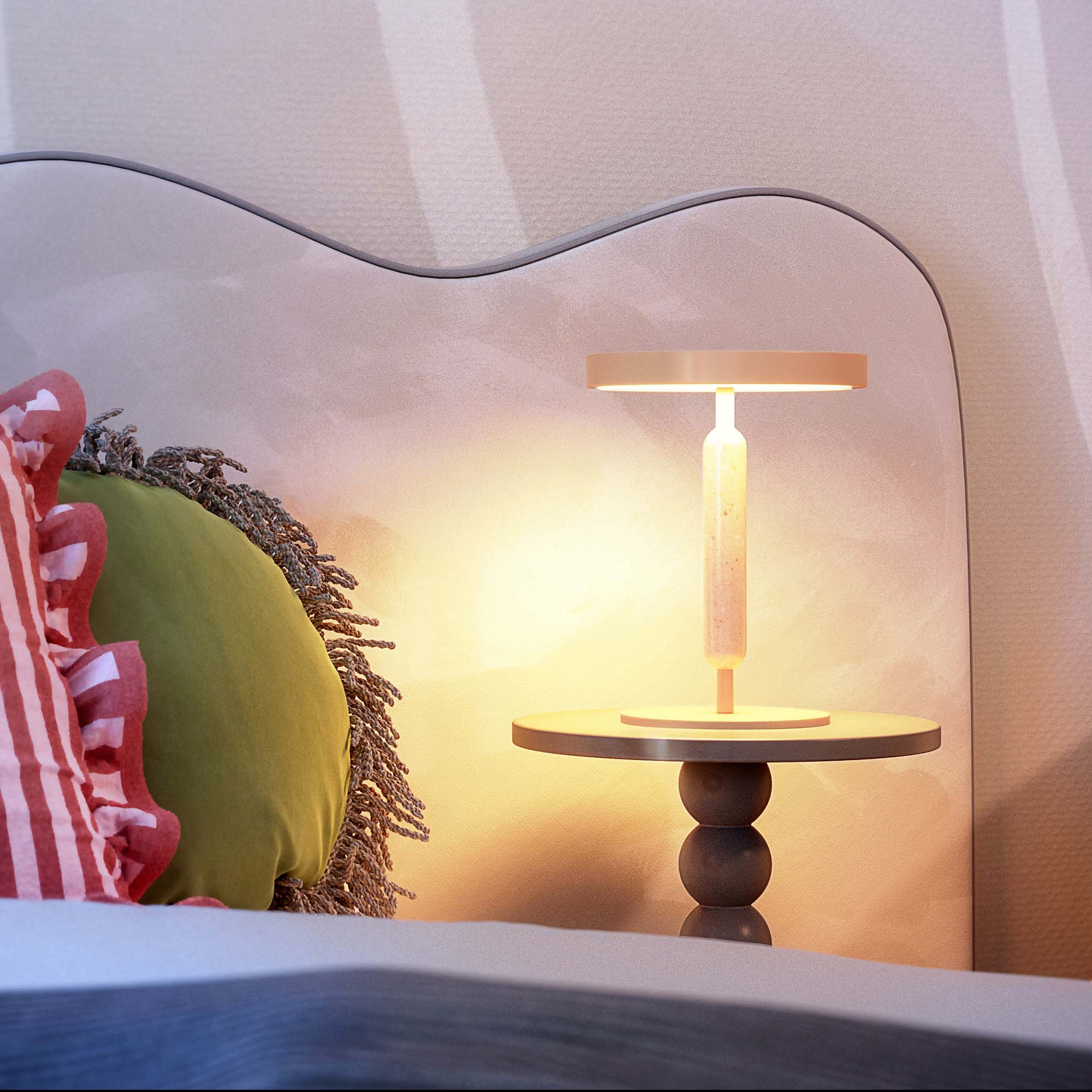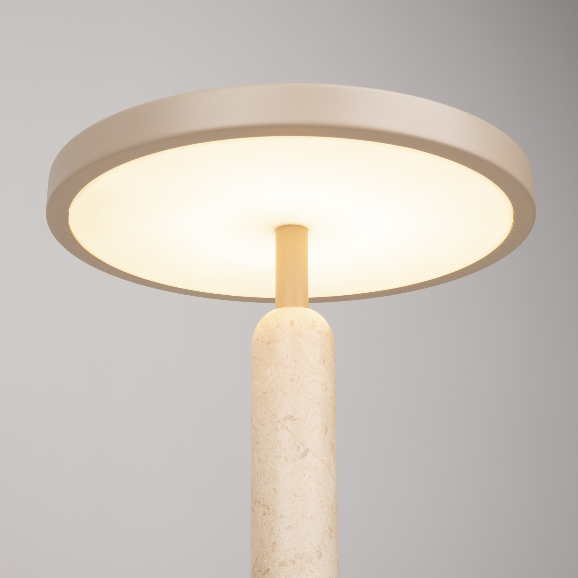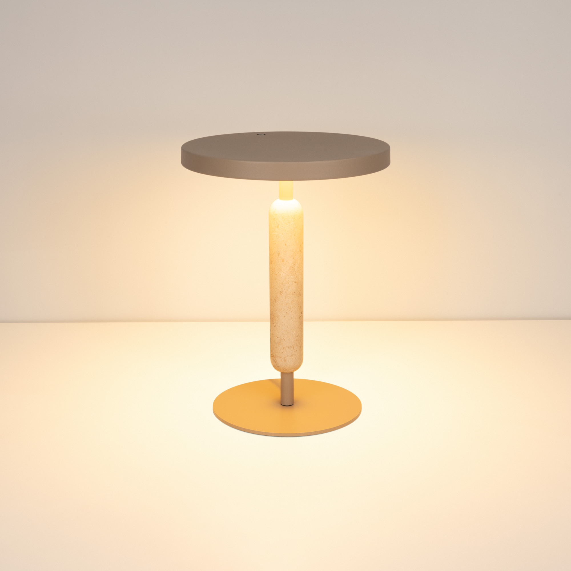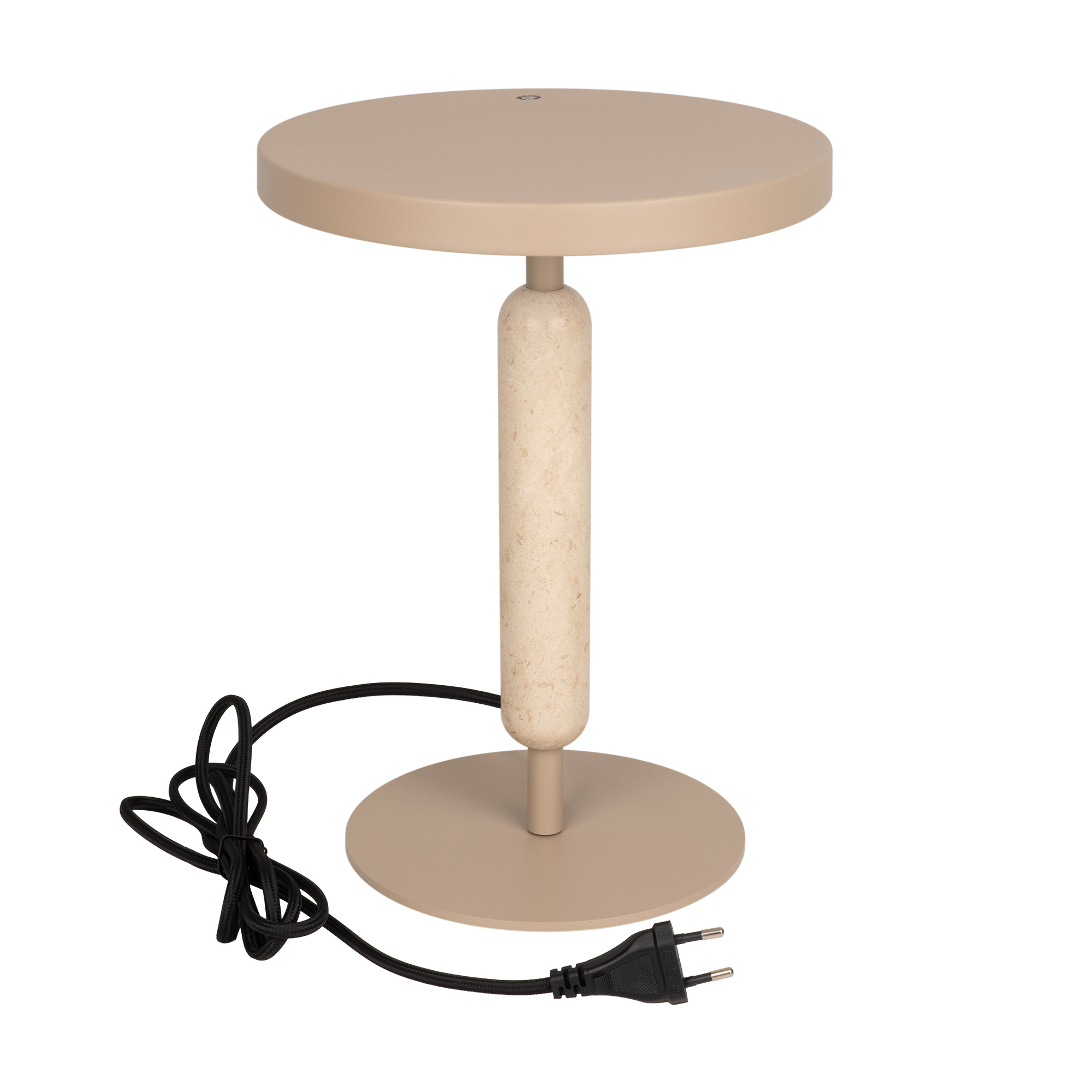 Настольный светильник ALYSS. С изменяемой цветовой температурой 2700/3200/4000К, переключается коротким нажатием на сенсорную кнопку на плафоне, диммирование происходит за счет ее удержания. Мощность 5 Вт, св. поток 195 лм, 39 лм/Вт, CRI>92, угол 110°, напряжение питания 230 В. Бежевый корпус из алюминия, декоративная вставка из мрамора, степень защиты IP20. Размер: диаметр 225 мм, высота 300 мм. Пульсация <1%.