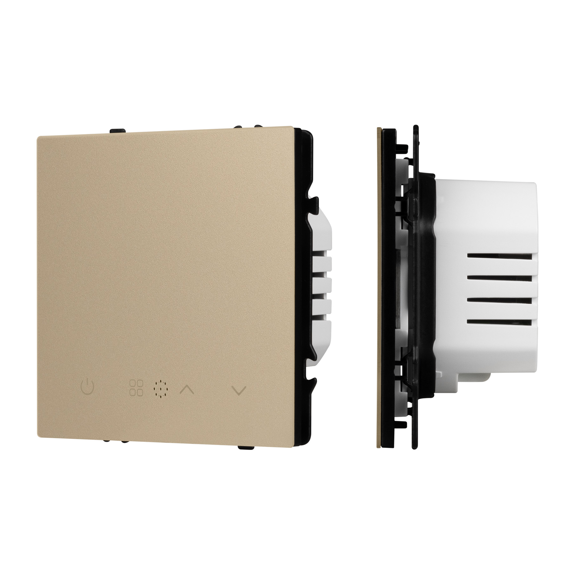 Терморегулятор совместим с рамками серии NOBE, создает утонченный минималистичный вид. Скрытый тип монтажа позволяет гармонично встроить в интерьер любого современного дизайн-проекта. Видимая часть механизма выполнена из глянцевого поликарбоната цвета золотой песок, что придает изделию приятные тактильные ощущения и стильный внешний вид.