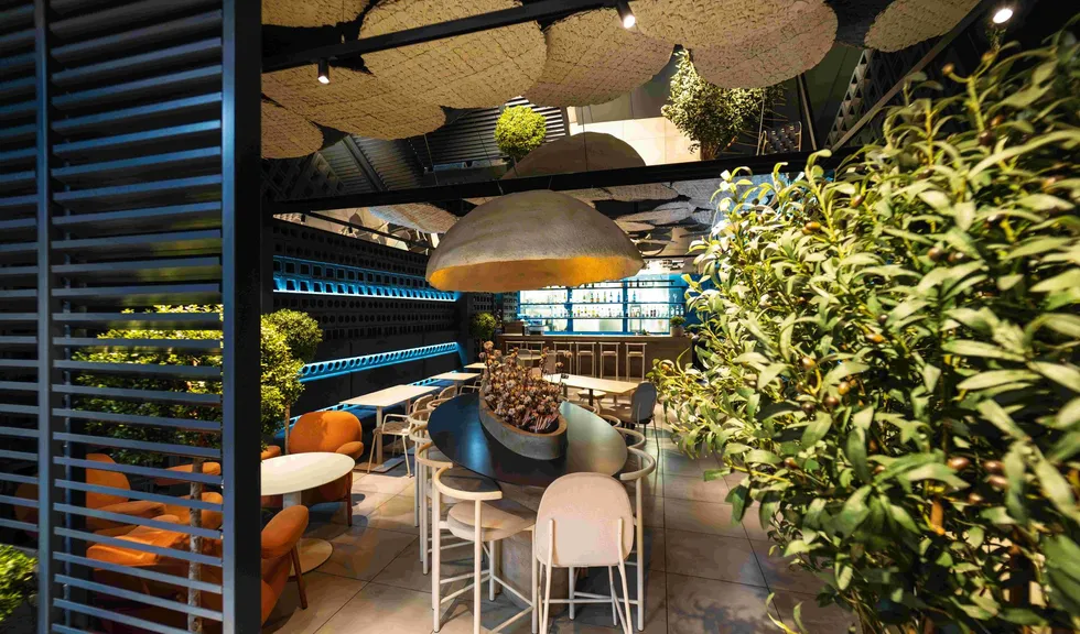 Помимо линейных светильников MAG DOTS, команда использовала споты MAG, даунлайты MS ATLAS и продукт серии DL-BL backlit, который обыграла с помощью объемного плафона необычной формы. Купол выполняет не только декоративную функцию, но еще помогает приглушить звуки и создать акустический комфорт в ресторане.