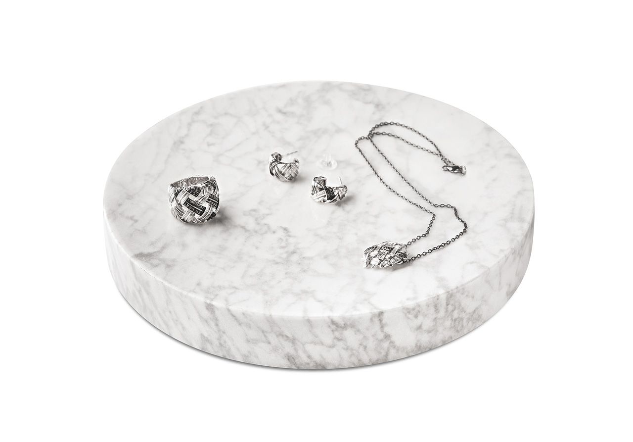 Для реализации проекта использованы светодиодные листы arlight® LX-500 12V Cx1 Cool White (5050, 105 LED), они были обрезаны по форме пьедесталов и закреплены на их внутренней стороне. На торце пьедестала для большей эстетичности и возможности быстро подключать и отключать питание был установлен стандартный разъем DC. Мрамор с мягким внутренним свечением выглядит очень эффектно и позволяет немного подсветить находящиеся на нём предметы, например, хрустальную вазу или драгоценные украшения.