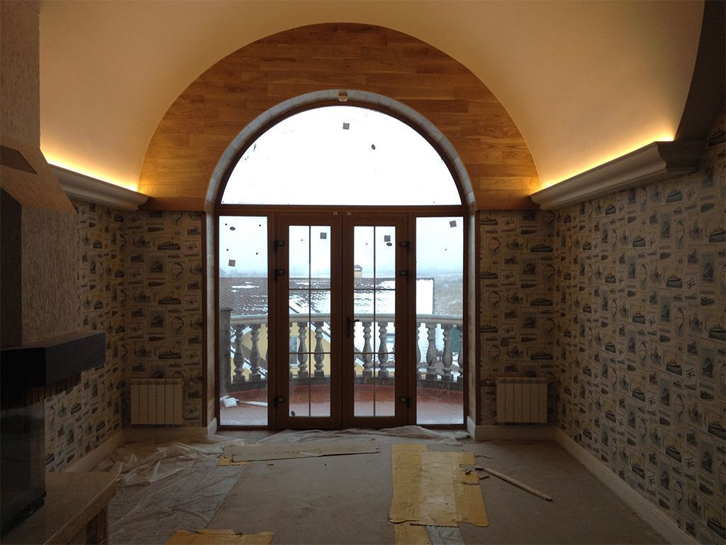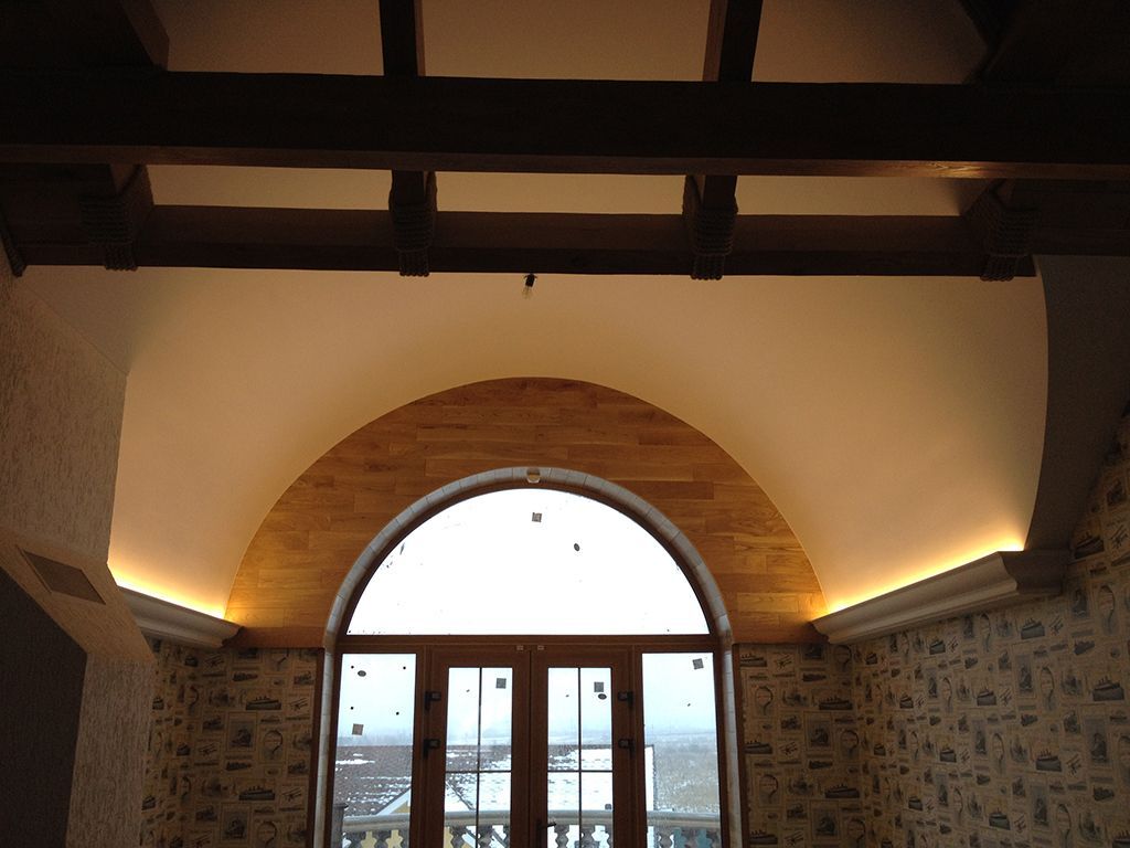 Светодиодная подсветка была установлена на мансарде, в двух спальных комнатах и кинозале. Для этого была использована двухрядная светодиодная лента arlight® 3528 2x2 белого свечения. Высокая яркость данной ленты позволяет использовать светодиодную подсветку в качестве источника мягкого основного освещения.