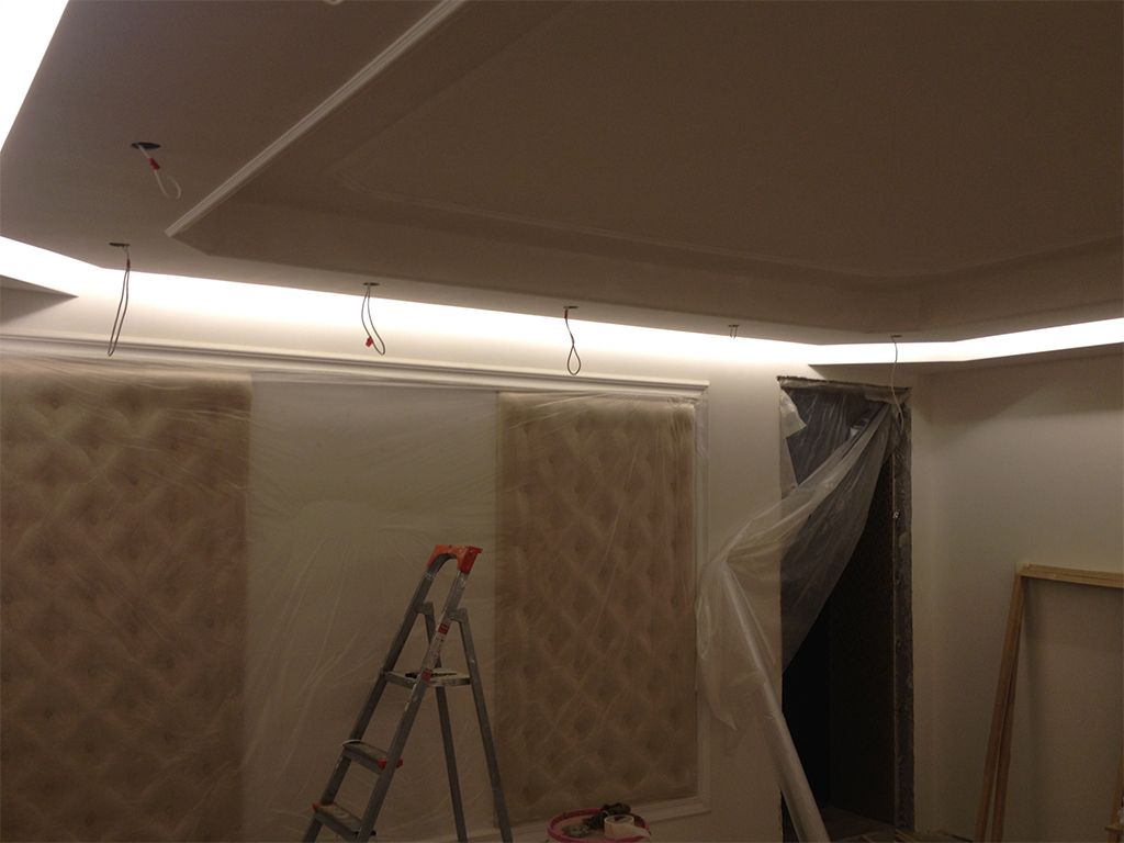 Блоки питания светодиодных лент были скрыты в специально сделанных нишах и лючках, поэтому с обслуживанием блоков трудностей не возникнет. Монтаж подсветки всех помещений был выполнен всего за полдня.